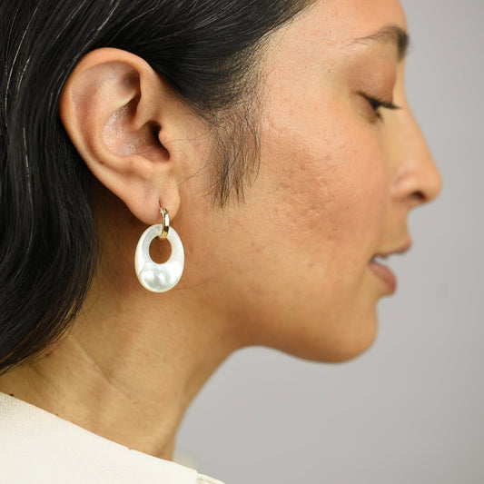 Organic Abalone Link Huggie Hoops