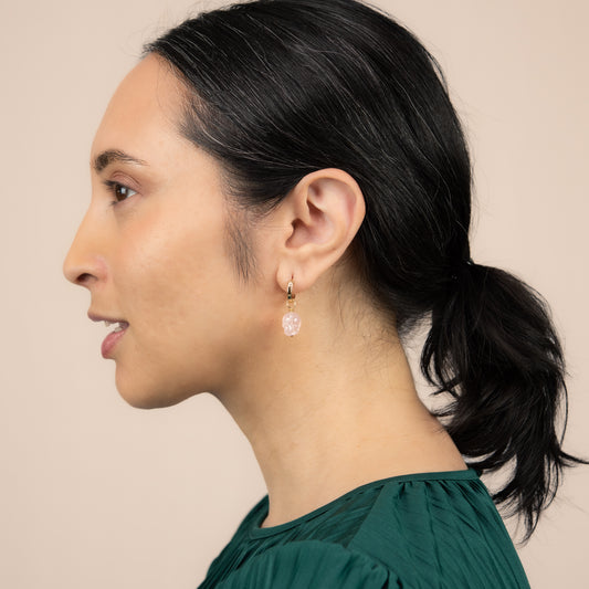 Rose Quartz Skull Huggie Hoops