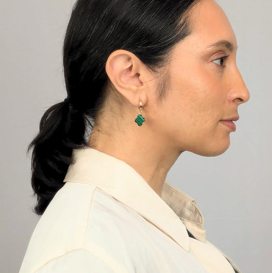 Malachite Clover Huggie Hoops