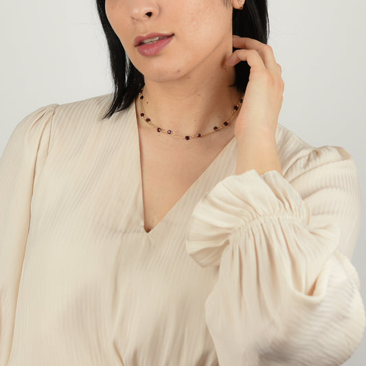 Long Upcycled Garnet Hexagon Necklace