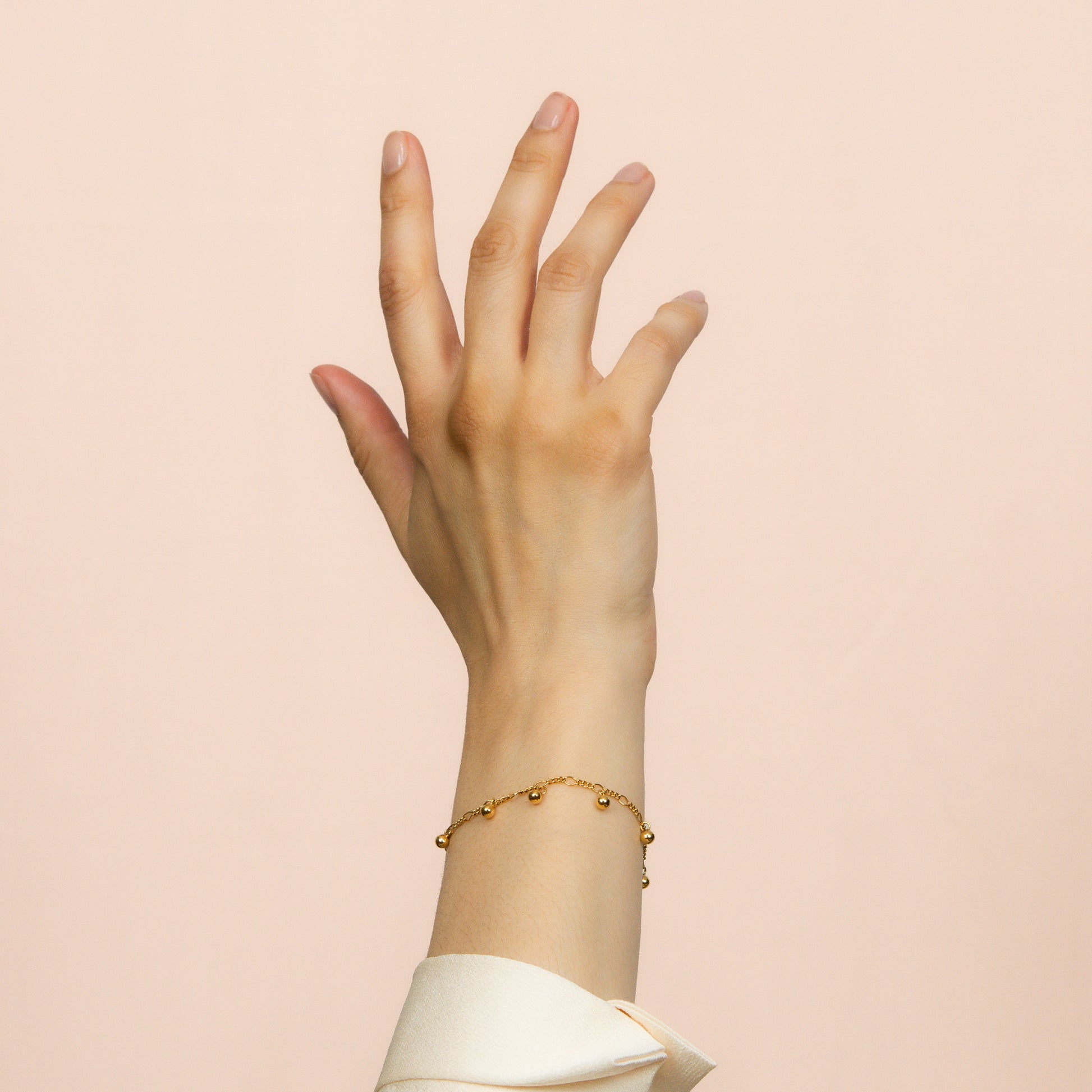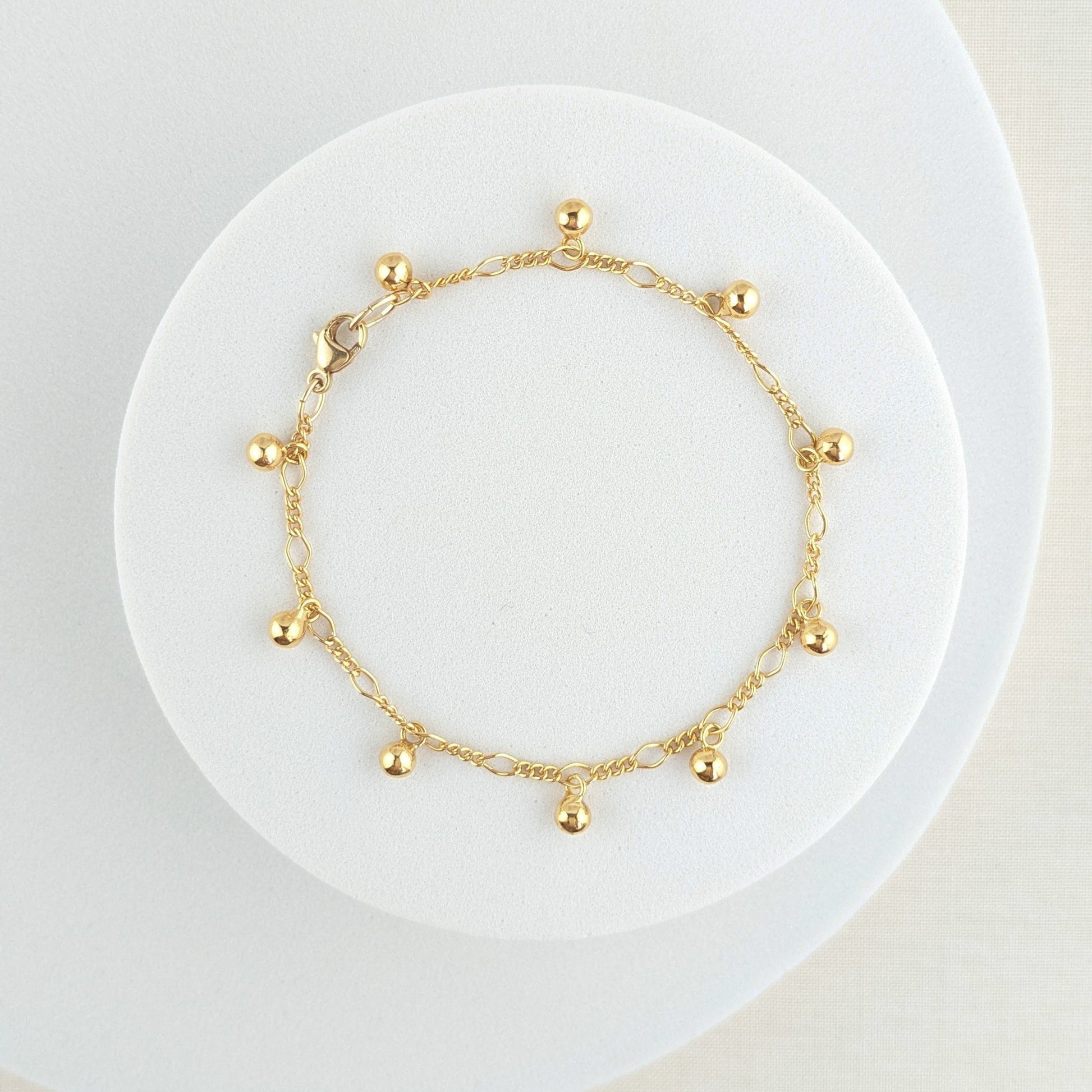 The Beaded Fringe Bracelet is a delightful way to add a little bohemian touch to your everyday life. Featuring a sparkling Figaro chain accented with light 4mm beads throughout. Made from 14K gold fill details. Lobster clasp.